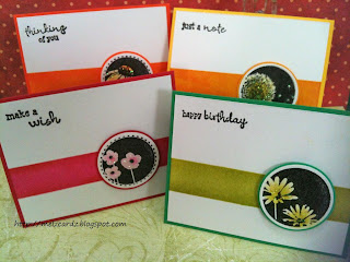 I've had this stamp set in my stash for some time, but only ever used the little sentiments out of it. I decided to give them a go and after a bit of experimenting, this is what I came up with. They were pretty quick and easy to do, and once I made the first one, I was able to knock together the remaining 3 cards in quick succession.